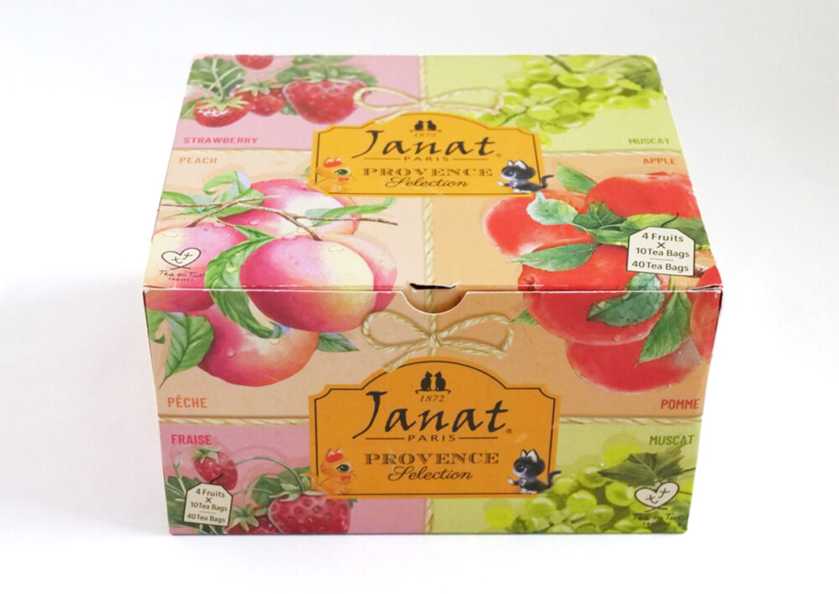 Enjoy Janat Flavour Assortments composed of strawberry, peach, apple and muscat fruit infusions. Each tea bag is sealed with aluminium wrappings to enable you to enjoy any time fresh flavours.