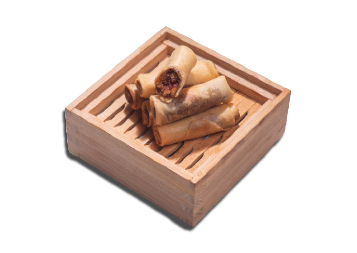 Crispy golden roll wraps juicy chicken bathed in BBQ sauce with a hint of sesame oil.