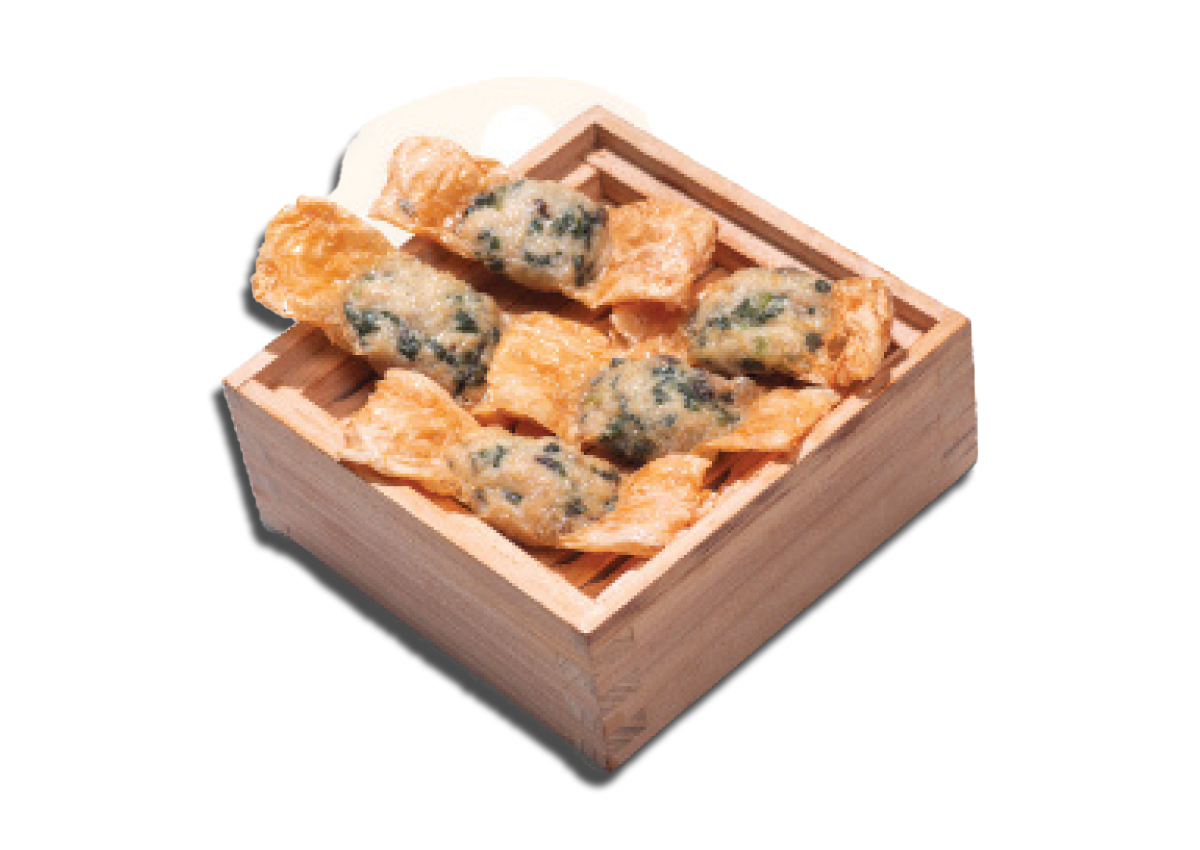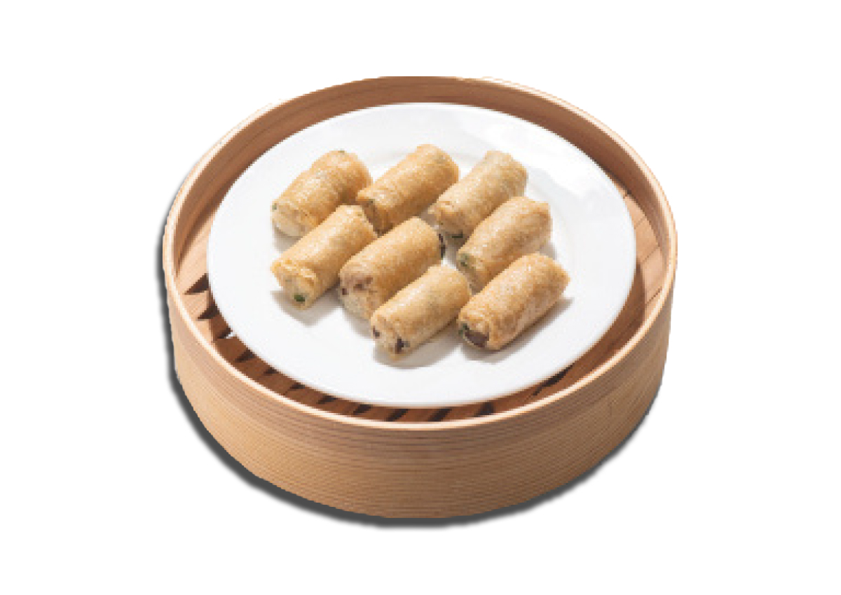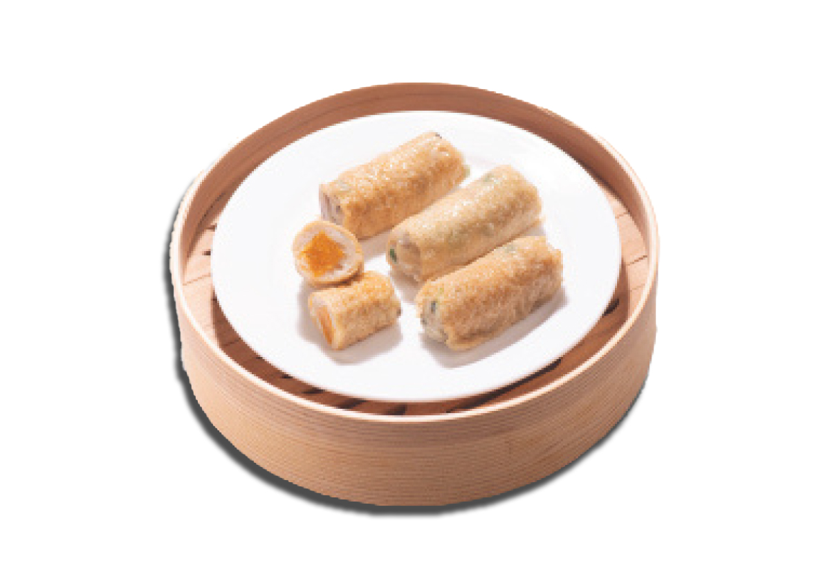 Golden bean curd skin wraps succulent chicken, cabbage & mushroom.