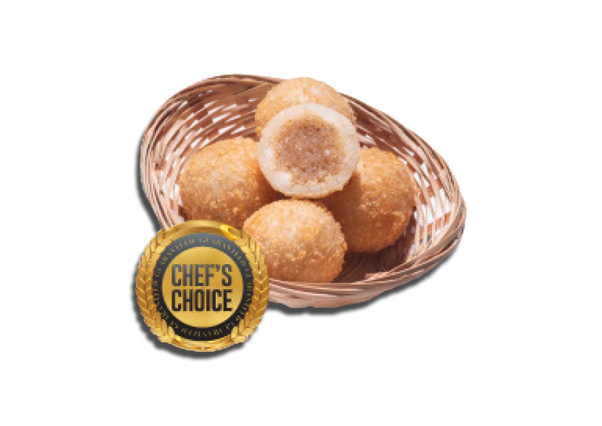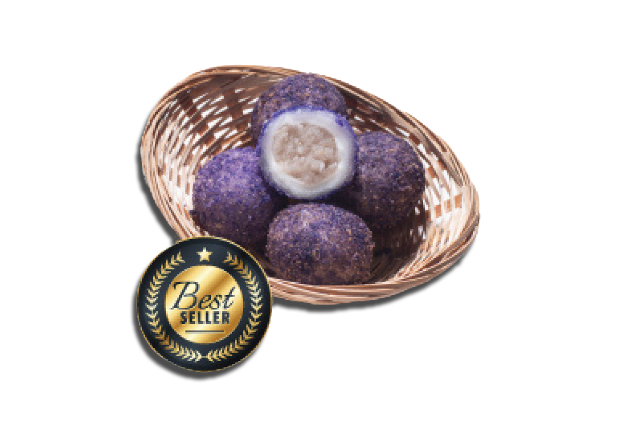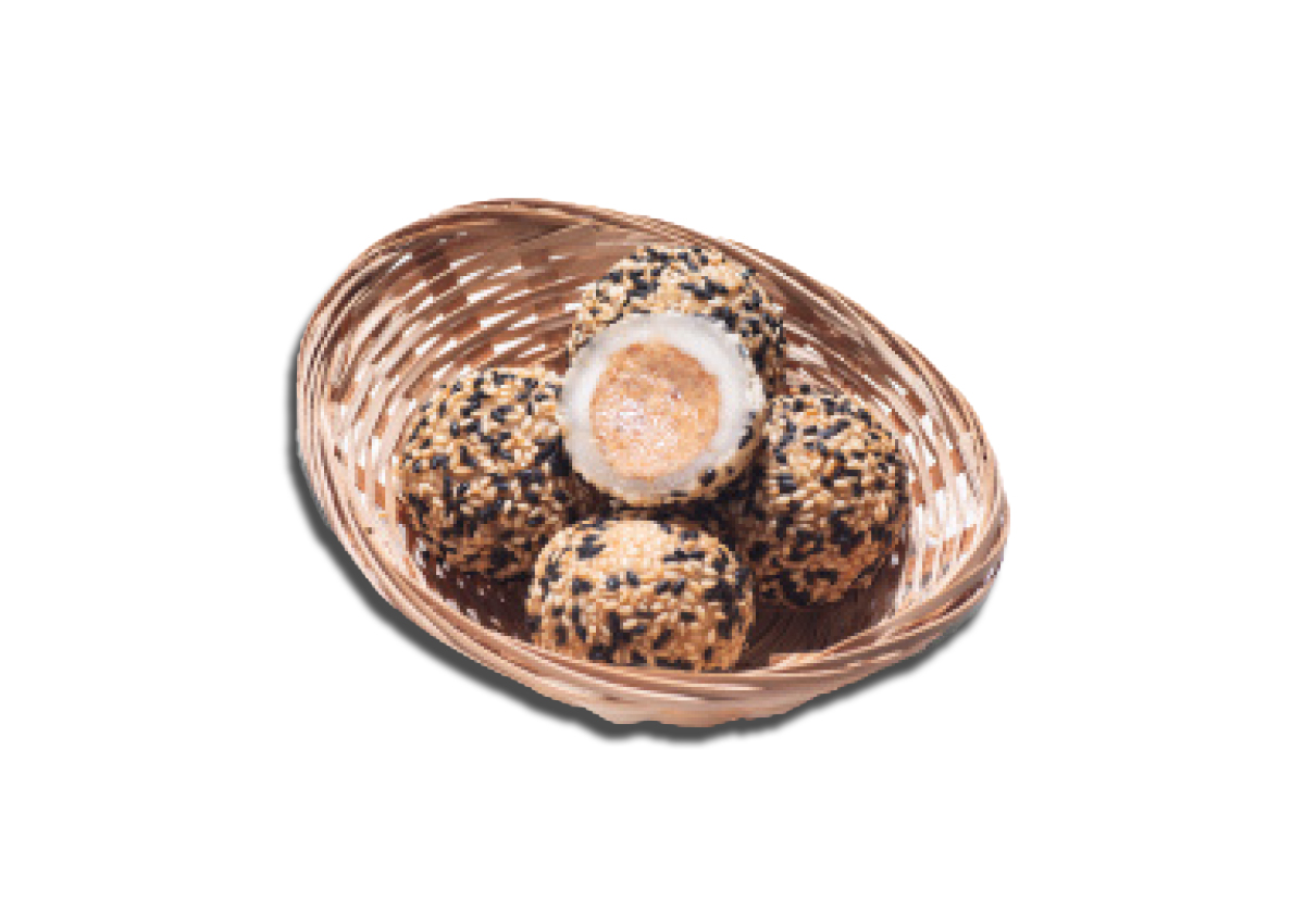 Sesame-crusted shell filled with rich, velvety sweet black sesame paste.