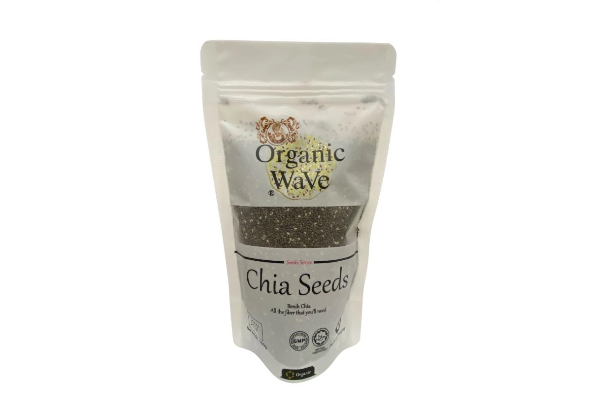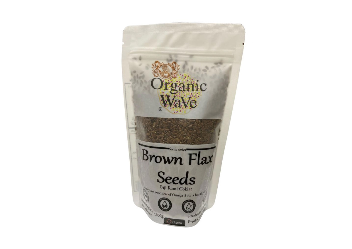 Brown chia seeds and golden flax seeds are nutrient-dense seeds. Chia seeds are high in omega-3s and fiber, and gel when mixed with liquid. Golden flax seeds are rich in omega-3s and fiber, often used ground in baking or sprinkled on foods.
